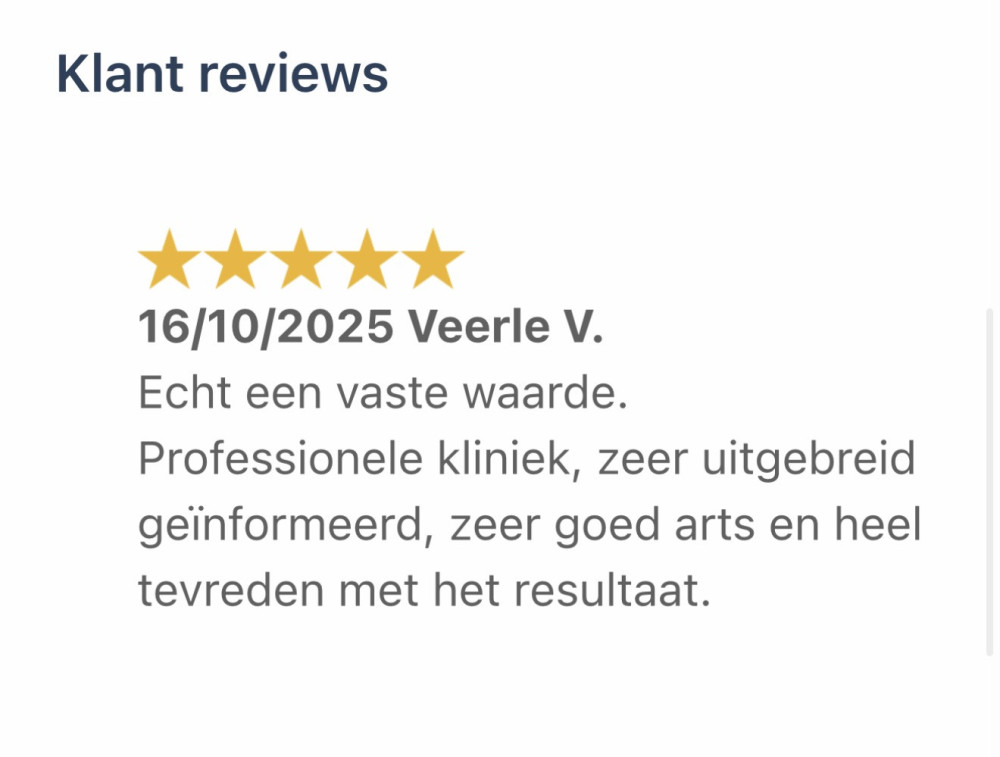 Ontdek hieronder de ervaringen van onze klanten. Meer dan 700 eerlijke en persoonlijke reviews van mensen die onze kliniek bezochten en onze zorg aan den lijve hebben ervaren. Deze reviews zijn ook te bekijken op onze boekingen pagina.